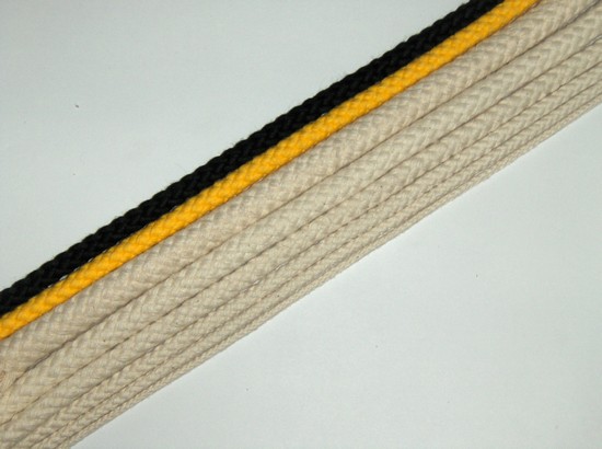 Katoen is een natuurlijke vezel die geen branderig gevoel geeft als het met de huid in aanraking komt, is milieuvriendelijk, goed afbreekbaar, brandvertragend en laat zich makkelijk verven. Katoen is standaard leverbaar in de kleuren ecru, geel, zwart en oranje. Ecru standaard verkrijgbaar in de diameters 3, 4, 5, 6, 8, 10, 12 mm. Verkrijgbaar in de diameters 3 t/m 16 mm. Bij voldoende afname.
